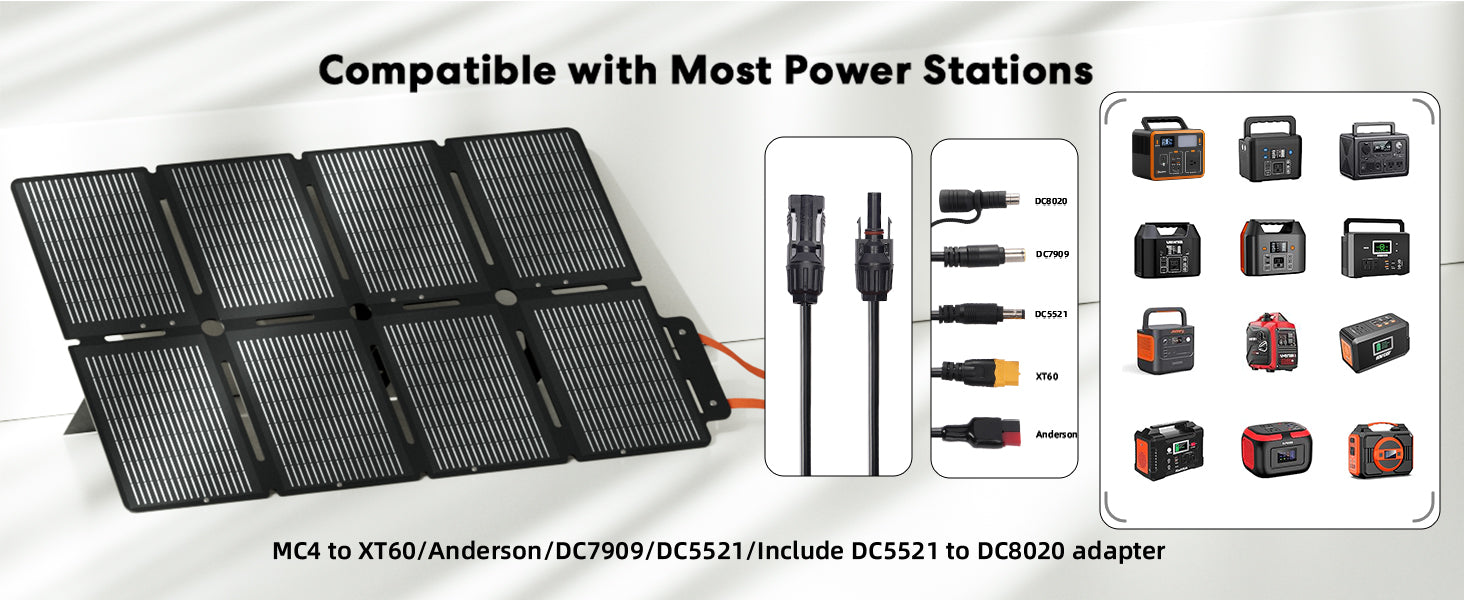 uice up via AC wall outlet, car charger, or sunlight! The included 100W solar panels feature 24% conversion efficiency