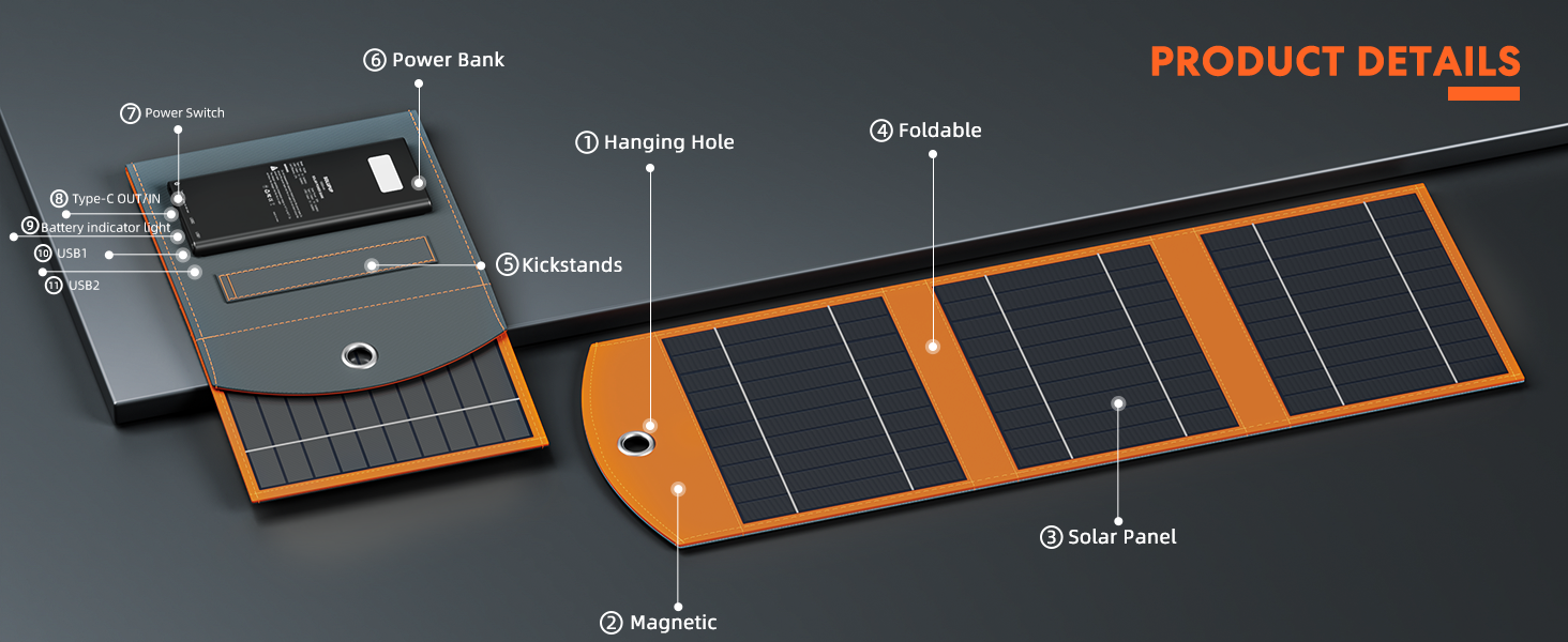 Harness Sun & Storage in One Pack: 30W Solar Charges While You Hike, 10000mAh Battery Powers Your Night Summit